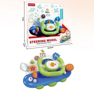 Інтерактивне кермо відкриває малюкові світ веселих пригод за кермом! Воно світиться, відтворює реалістичні звуки двигуна, перемикання швидкостей, поворотників і навіть запуску ключем запалювання. Музика та різноманітні звукові ефекти роблять гру ще цікавішою, а рухомі елементи захоплюють увагу дитини. Завдяки зручному розміру кермо легко тримати та брати із собою в подорожі.