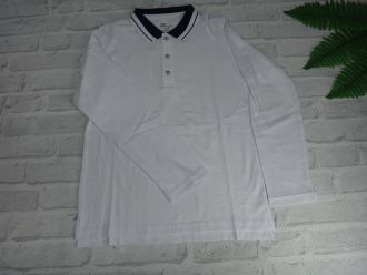 Стильне базове біле поло з чорним комірцем, застібкою на гудзики та довгим рукавом. Виготовлене з якісного дихаючого матеріалу - ідеально підходить для носіння в школу чи для святкових подій.